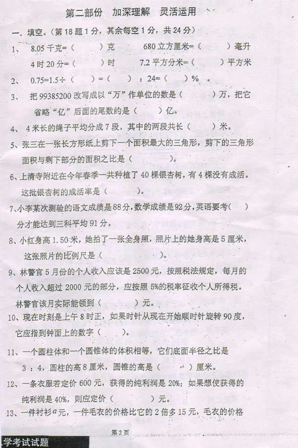 导读:重庆巴蜀中学小升初新生开学有入学测试,下面是2010年数学测试题。