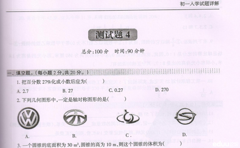 【点击下载:重庆138等名校小升初入学考试数学题(第四套)】