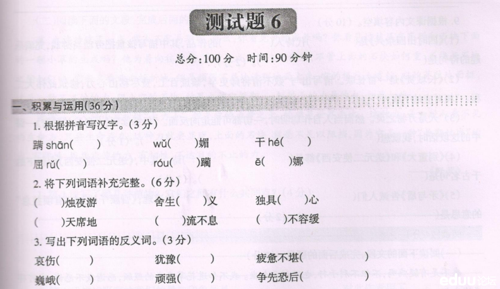 【点击下载:重庆138等名校小升初入学考试语文题(第六套)】