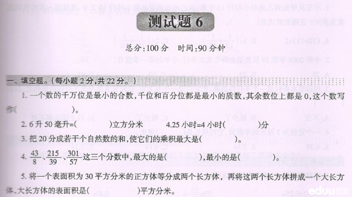 【点击下载:重庆138等名校小升初入学考试数学题(第六套)】