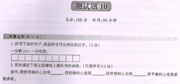 【点击下载:重庆138等名校小升初入学考试语文题(第十套)】