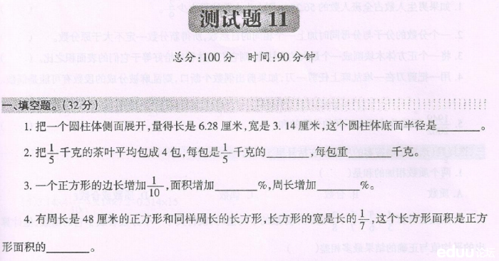 【点击下载:重庆138等名校小升初入学考试数学题(第十一套)】