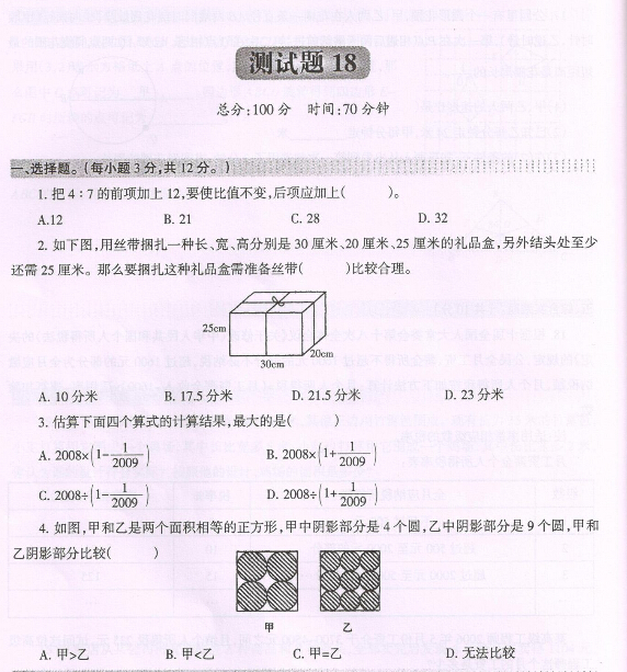 【点击下载:重庆138等名校小升初入学考试数学题(第十八套)】
