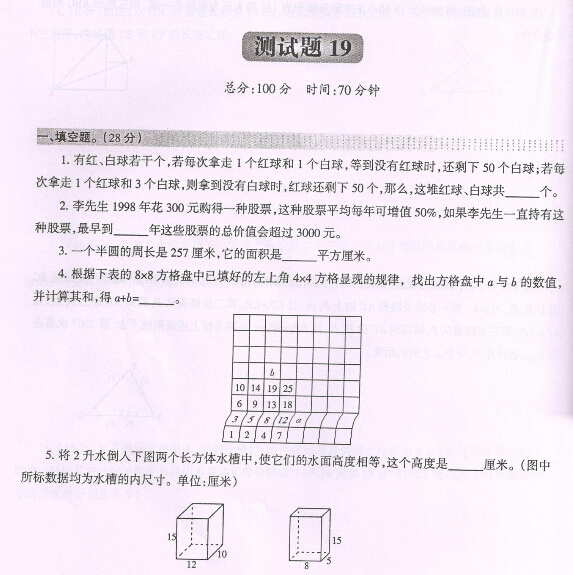 【点击下载:重庆138等名校小升初入学考试数学题(第十九套)】