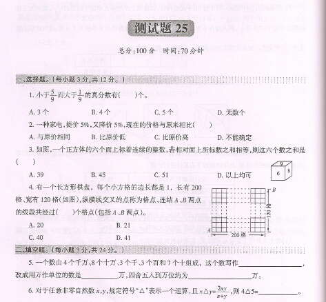 【点击下载:重庆138等名校小升初入学考试数学题(第二十五套)】