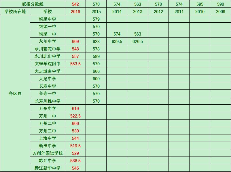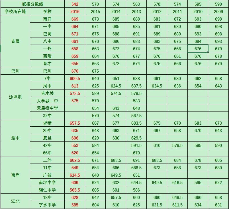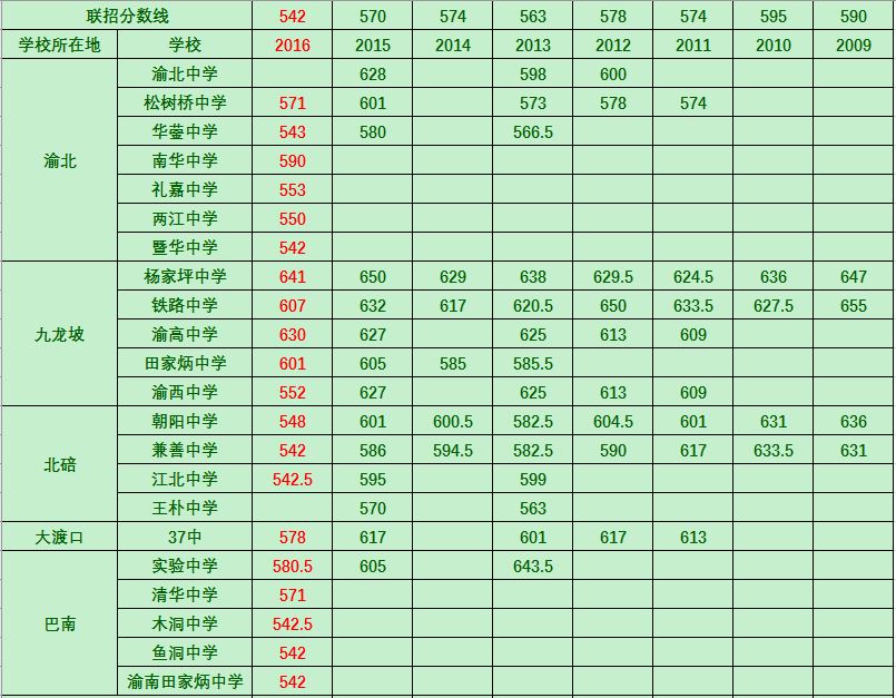 重庆2016部分高中联招分数线整合版