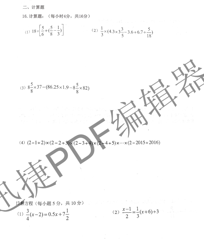 2017年重庆巴蜀中学小升初某次数学考试真题(2)