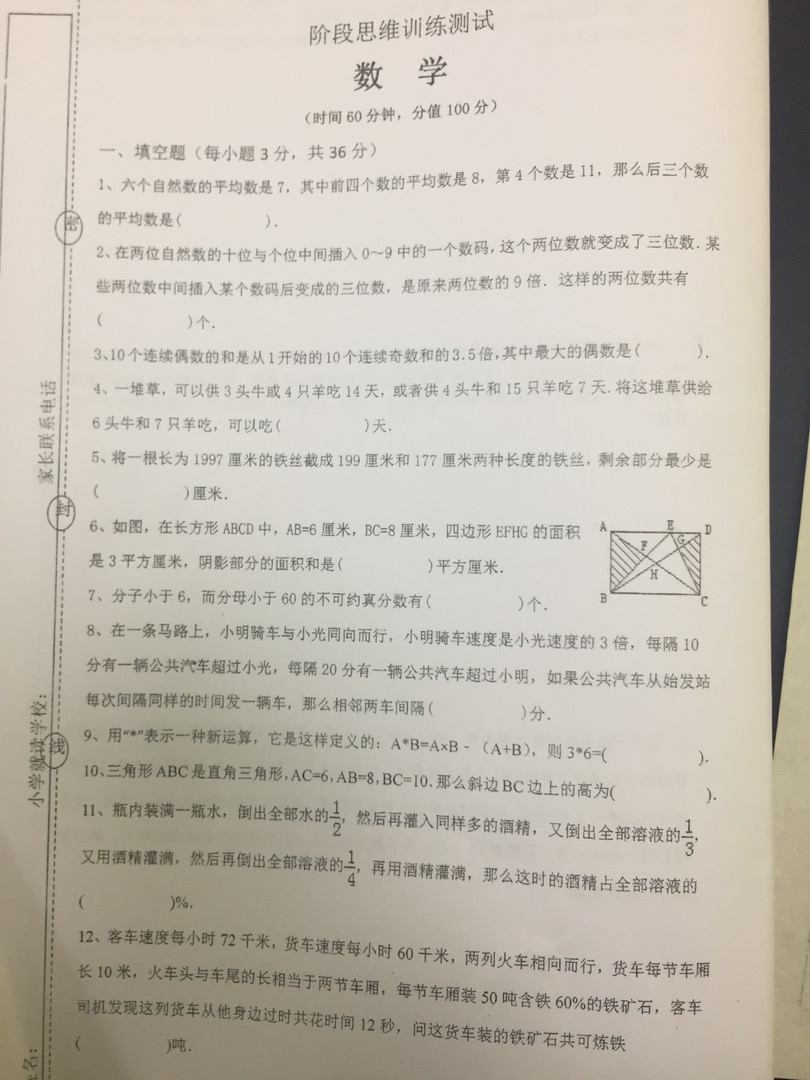 2018年1月重庆YC本部小升初考试数学试卷